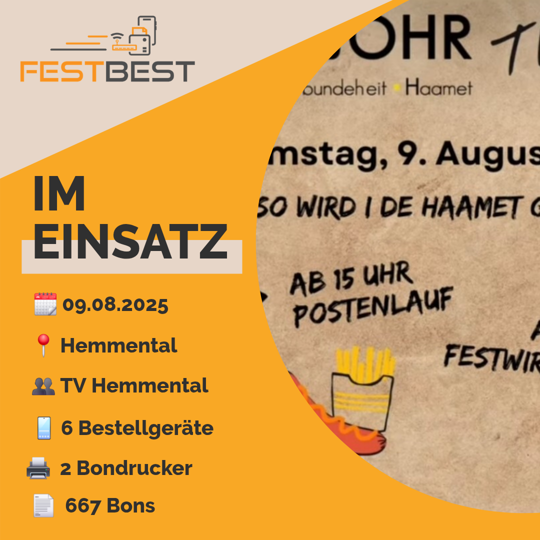 100 Jahre TV Hemmental, ein Grund zum Feiern und ein schönes Fest für das ganze Dorf zu organisieren. FESTBEST war ebenfalls vor Ort und unterstützte mit ihrem Bestellsystem die Festwirtschaft.
