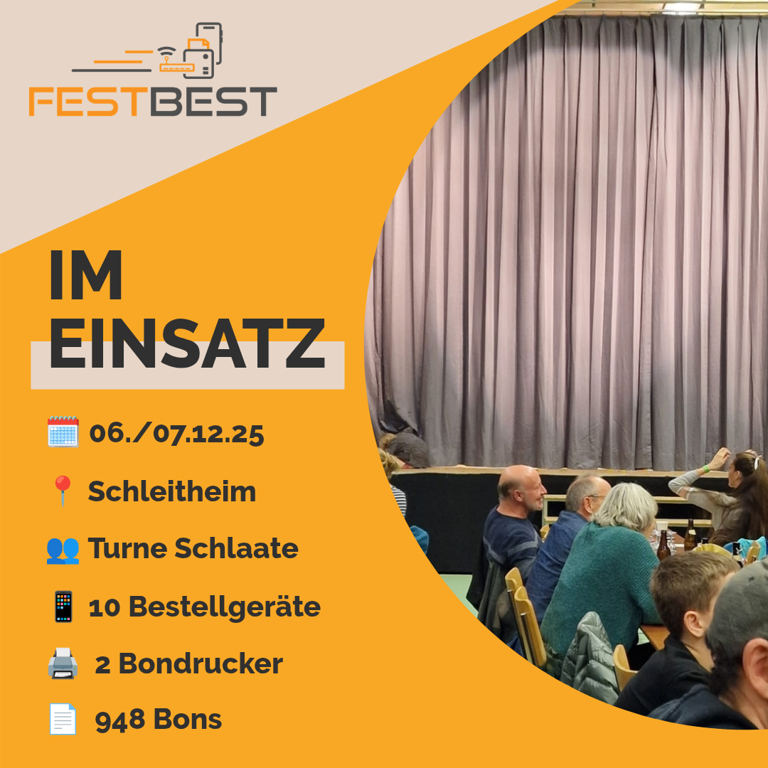 Zum ersten Mal durften wir mit FESTBEST - Bestellsystem nach Schleitheim zum Turne Schlaate. Hier unterstütze unser System die Festwirtschaft beim Chränzli.