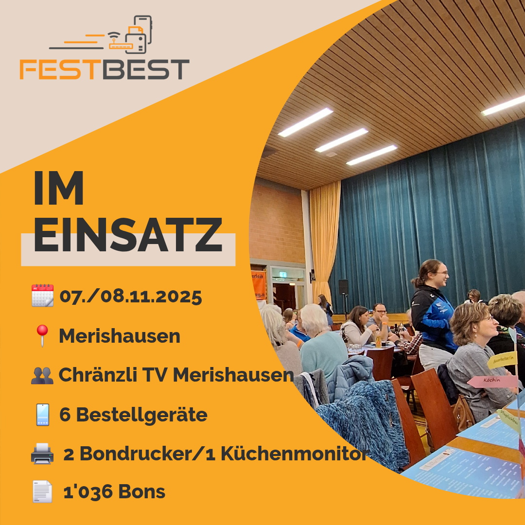 FESTBEST wurde erfolgreich zum ersten Mal beim Chränzli desTV Merishausen eingesetzt. Am ersten Abend durften wir sogar die gute Show als Gast geniessen.