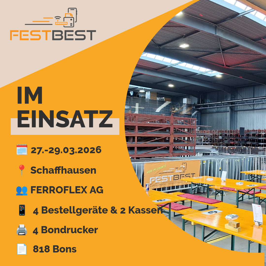 Ein wesentlicher Erfolgsfaktor war der Einsatz von FESTBEST. Am Freitag unterstützte FESTBEST den Anlass mit modernen Bestellgeräten, welche vom Servicepersonal effizient genutzt wurden. Dadurch konnten Bestellungen direkt aufgenommen und zügig verarbeitet werden, was zu einem reibungslosen Ablauf beitrug.