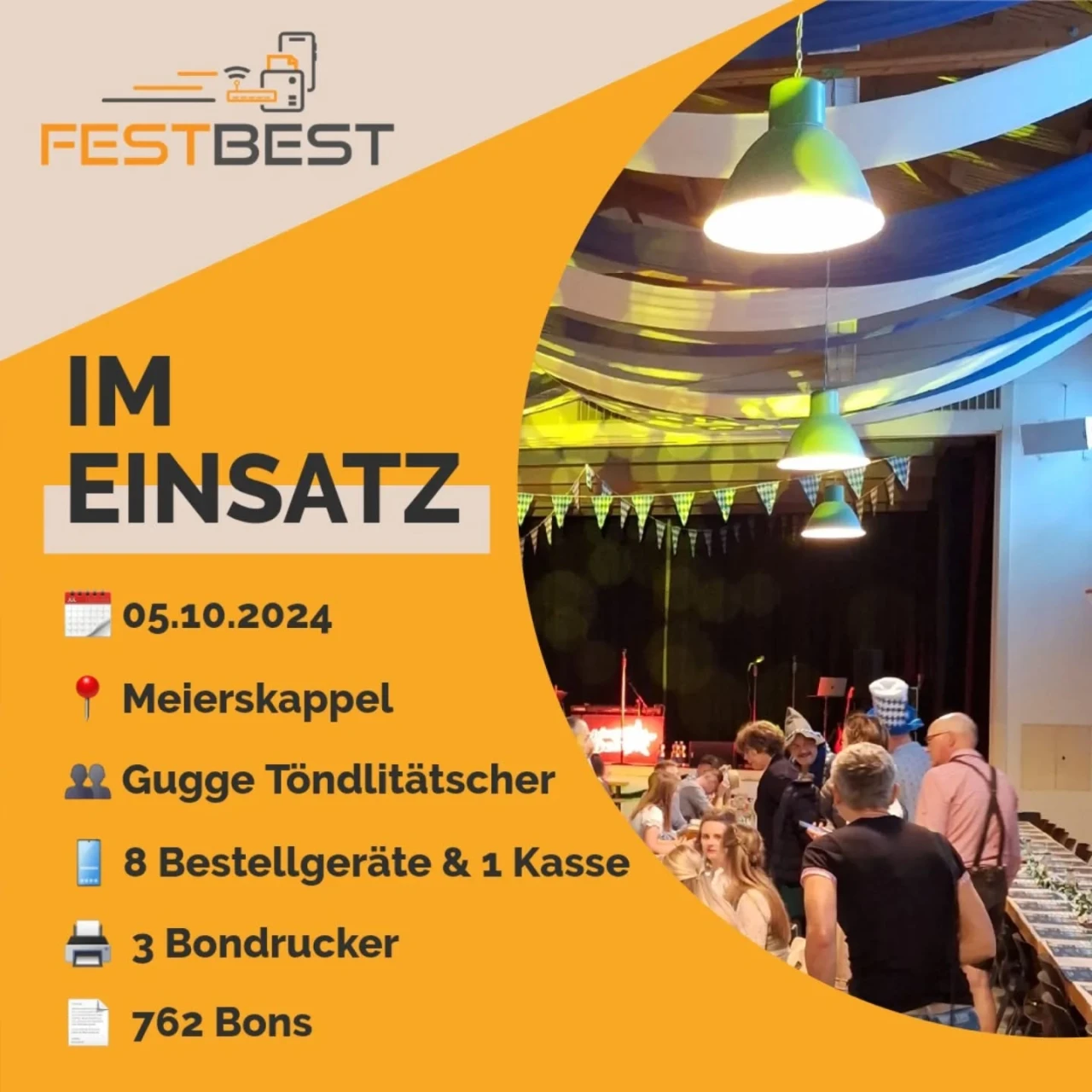 O zapft is! Das erste Oktoberfest der Guggenmusik Töndlitätscher im schönen Meierskappel, fand bei bester Stimmung am 5. Oktober 2024 statt. Zu unserer Freude, durften auch wir von FESTBEST bei dieser Premiere dabei sein.