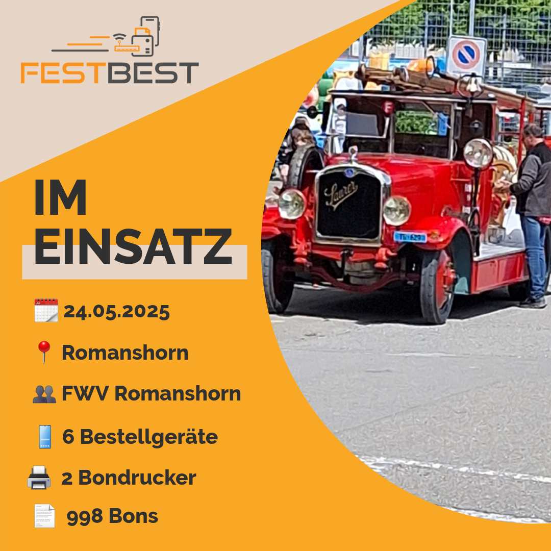 Für einen einfach und reibungslosen Ablauf in der Festwirtschaft, setzte der Feuerwehrverein Romanshorn auf FESTBEST. Wir bedanken uns für die Zusammenarbeit und das entgegen gebrachte Vertrauen.