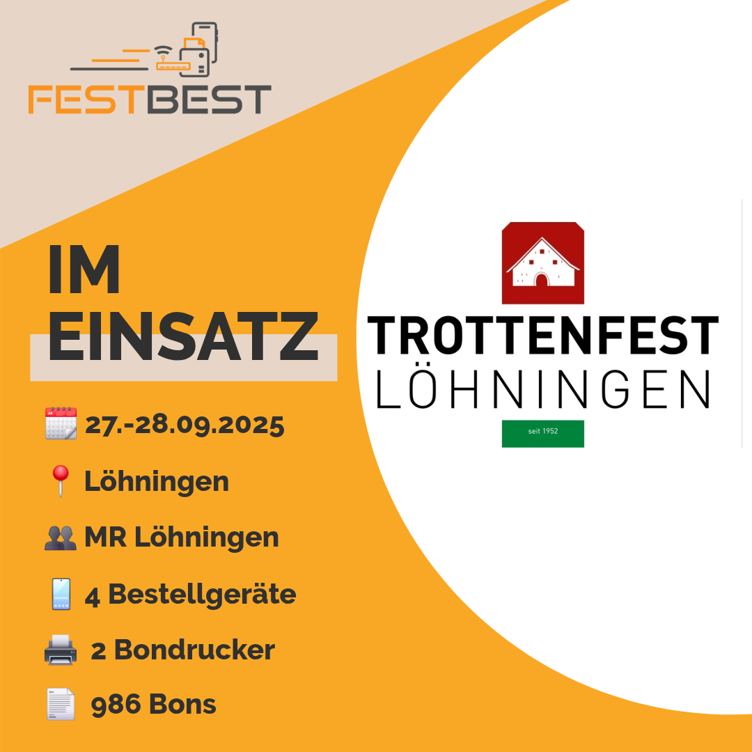 Die Männerriege Löhningen setzte in diesem Jahr zum ersten Mal FESTBEST- Bestellsystem in ihrer Festwirtschaft ein.