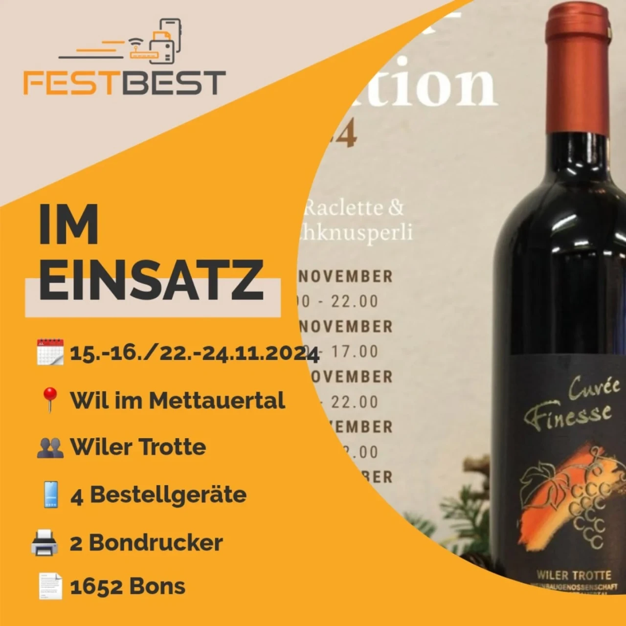 Zum zweiten Mal in diesem Jahr durften wir nach Wil im Kanton Aargau fahren. Dieses Mal für die Wiler Trotte zum Event "Advents-Degustation"