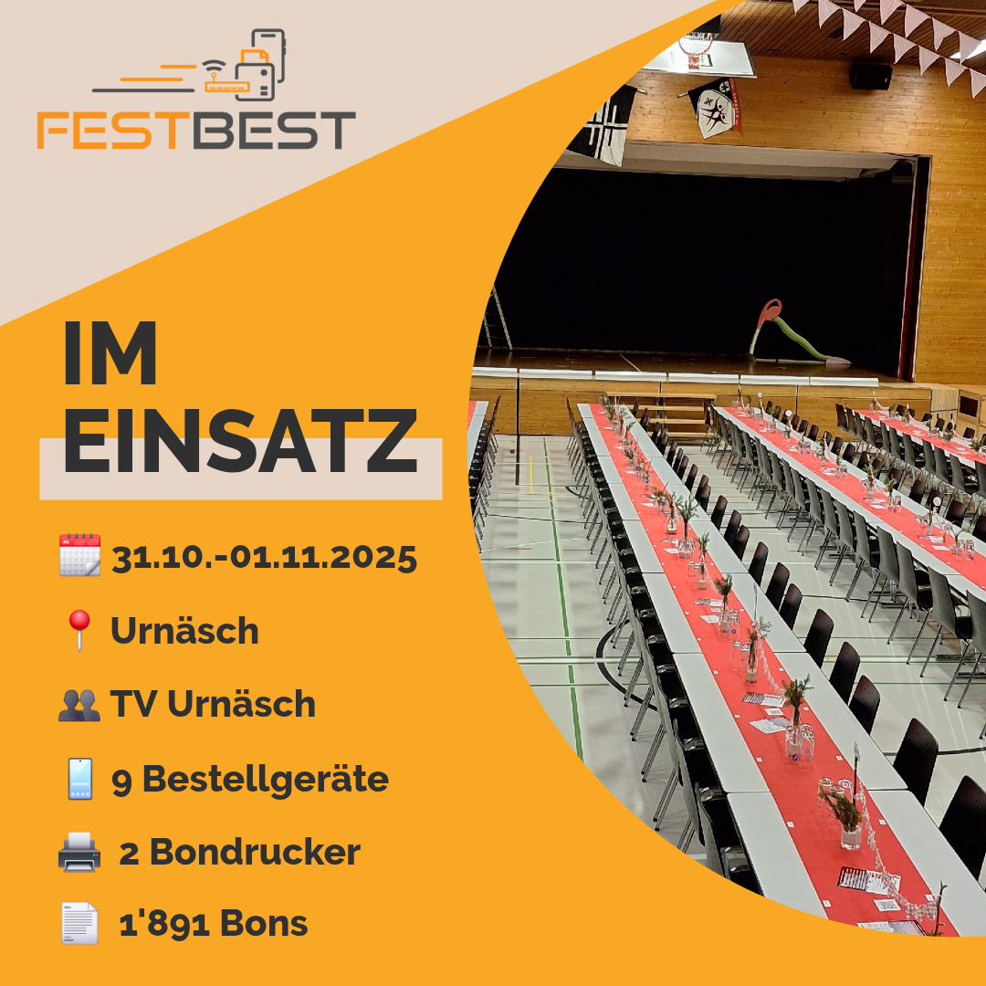 Wir durften beim TV Urnäsch zwei tolle Tage als Support mit FESTBEST verbringen und sorgten so für einen reibungslosen Ablauf bei der Festwirtschaft.