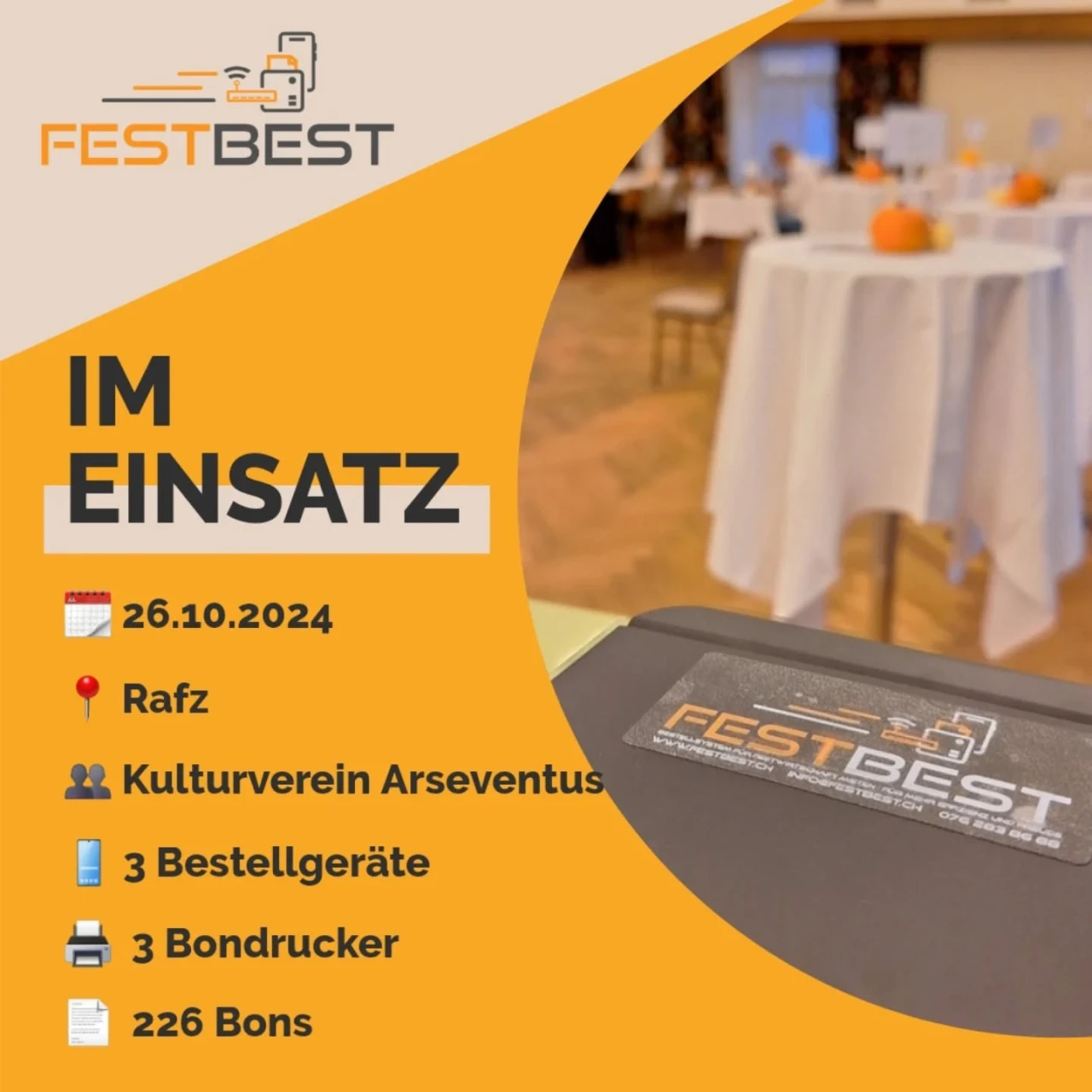 Herzlichen Dank dem Organisator Kulturverein Arseventus, dass unser Bestellsystem dabei sein durfte.